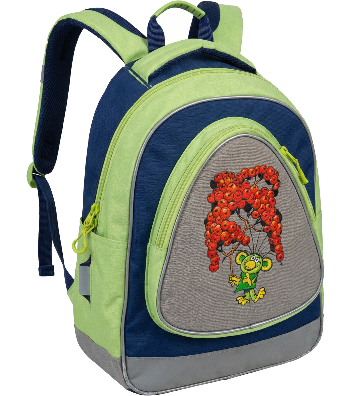 Detský batoh v atraktívnej farebnej kombinácii modrej a zelenej farby zaujme veselým motívom na prednej strane a je ideálnou voľbou do škôlky, školy aj na výlety.